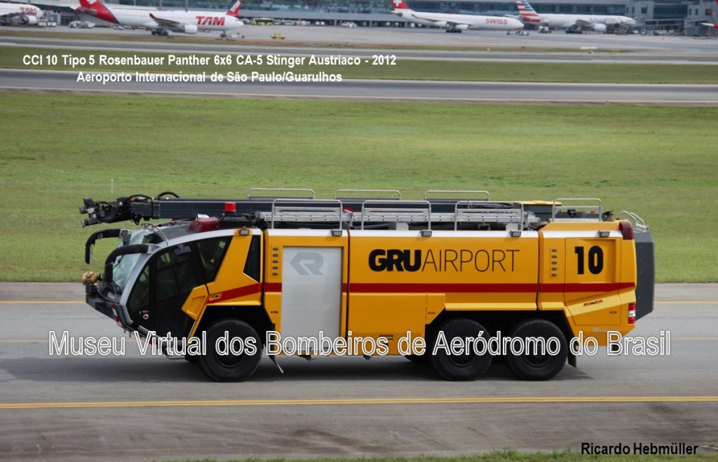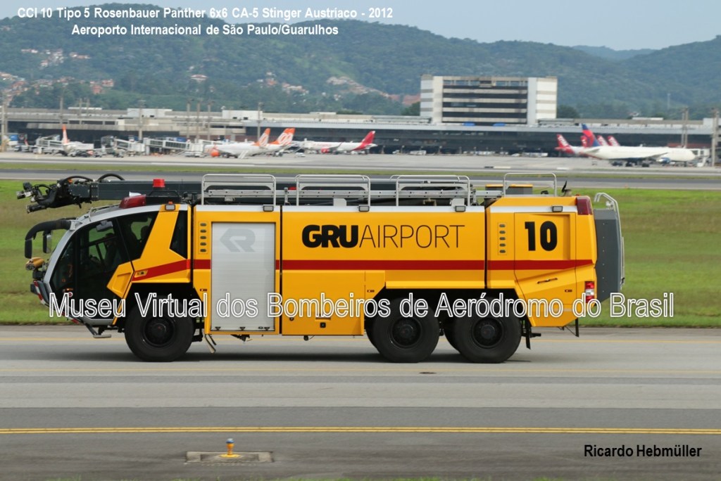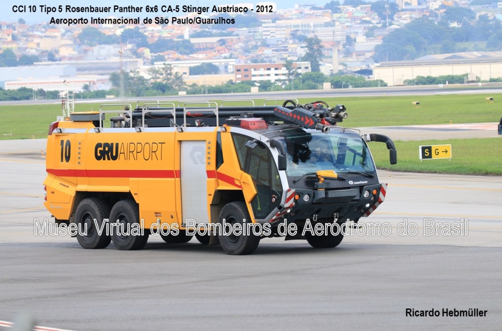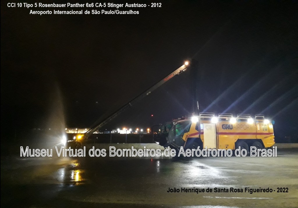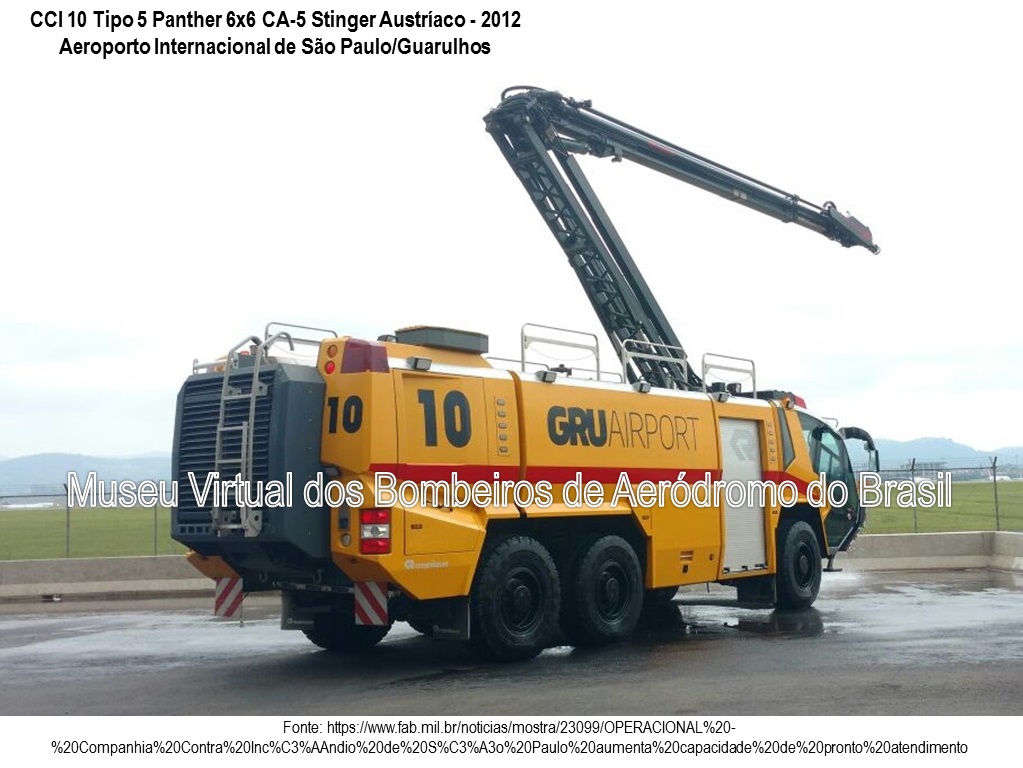 A concessão do Aeroporto Internacional de São Paulo, em Guarulhos, à GRU Airport ocorreu em 06 de fevereiro de 2012. Em 2013, a concessionária iniciou a modernização da frota de CCI, adquirindo 01 Rosenbauer Panther 6×6 C-5 Stinger (o de número 10), fabricado pela Rosenbauer Autríaca em 2012.