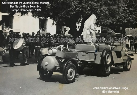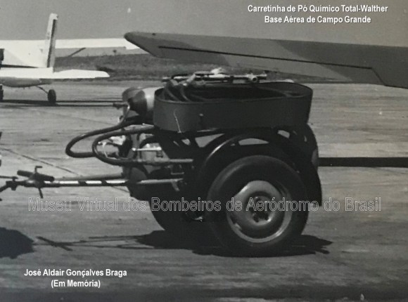 Nos anos 60, o então Ministério da Aeronáutica adquiriu várias carretinhas de pó químico da empresa alemã Total-Walther para equipar os aeródromos militares e os principais aeroportos do país. Elas eram rebocadas por veículos leves e rápidos, como os jeeps. Esse fato fazia com que a carretinha e PQ, muitas vezes, fosse o primeiro equipamento de combate a incêndio a chegar ao local do acidente. Além disso, nos casos em que o acidente ocorria em locais de difícil acesso para os CCI, ela era o único recurso capaz de chegar ao local do acidente. No caso específico desse equipamento, no qual o reservatório de PQ ficava na horizontal, era necessário desengatar o reboque e colocar o reservatório na posição vertical para realizar a operação. Esses equipamentos ficaram em operação até o início da década de 90.