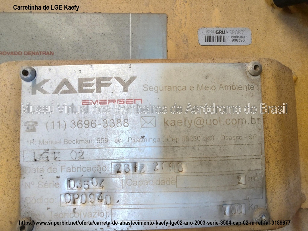 Em 2003, a Regional São Paulo da Infraero adquiriu algumas carretinhas de LGE para seus aeroportos. O objetivo era proporcionar um meio rápido de reabastecer os CCI com LGE no local da emergência. Ela também permitia a retirada rápida do LGE do CCI nos casos de manutenção. Entretanto, a carretinha do Aeroporto Internacional de São Paulo/Guarulhos apresentou dois graves problemas: O primeiro foi a soltura do revestimento interno do tanque em contato com o LGE, e o segundo, a falta de quebra-ondas. Esses dois fatores impediram que a carretinha fosse colocada em uso.