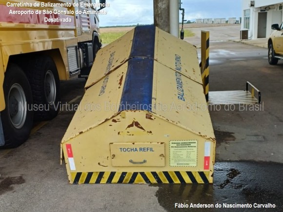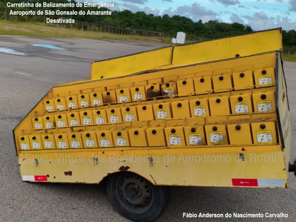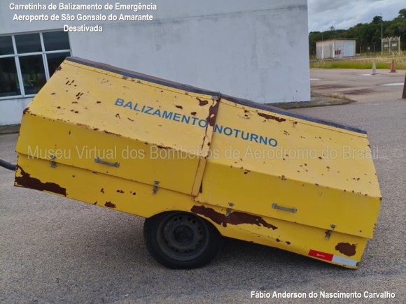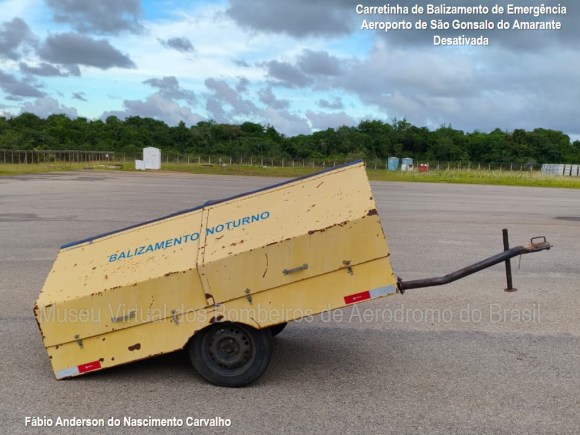 Carretinha adaptada pela INFRAERO para transportar o Kit de Balizamento de Emergência do Aeroporto de Natal (desativado em 31 de maio de 2014), fotografada em 2026 no Aeroporto Internacional de São Gonçalo do Amarante/RN.